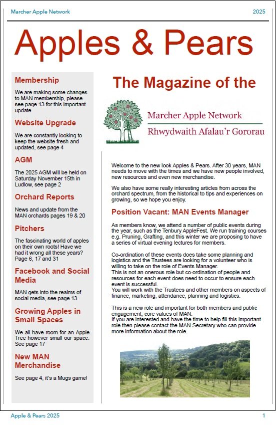 Each year in late Summer/early autumn, the Marcher Apple Network produces a magazine, Apples & Pears, for its members.